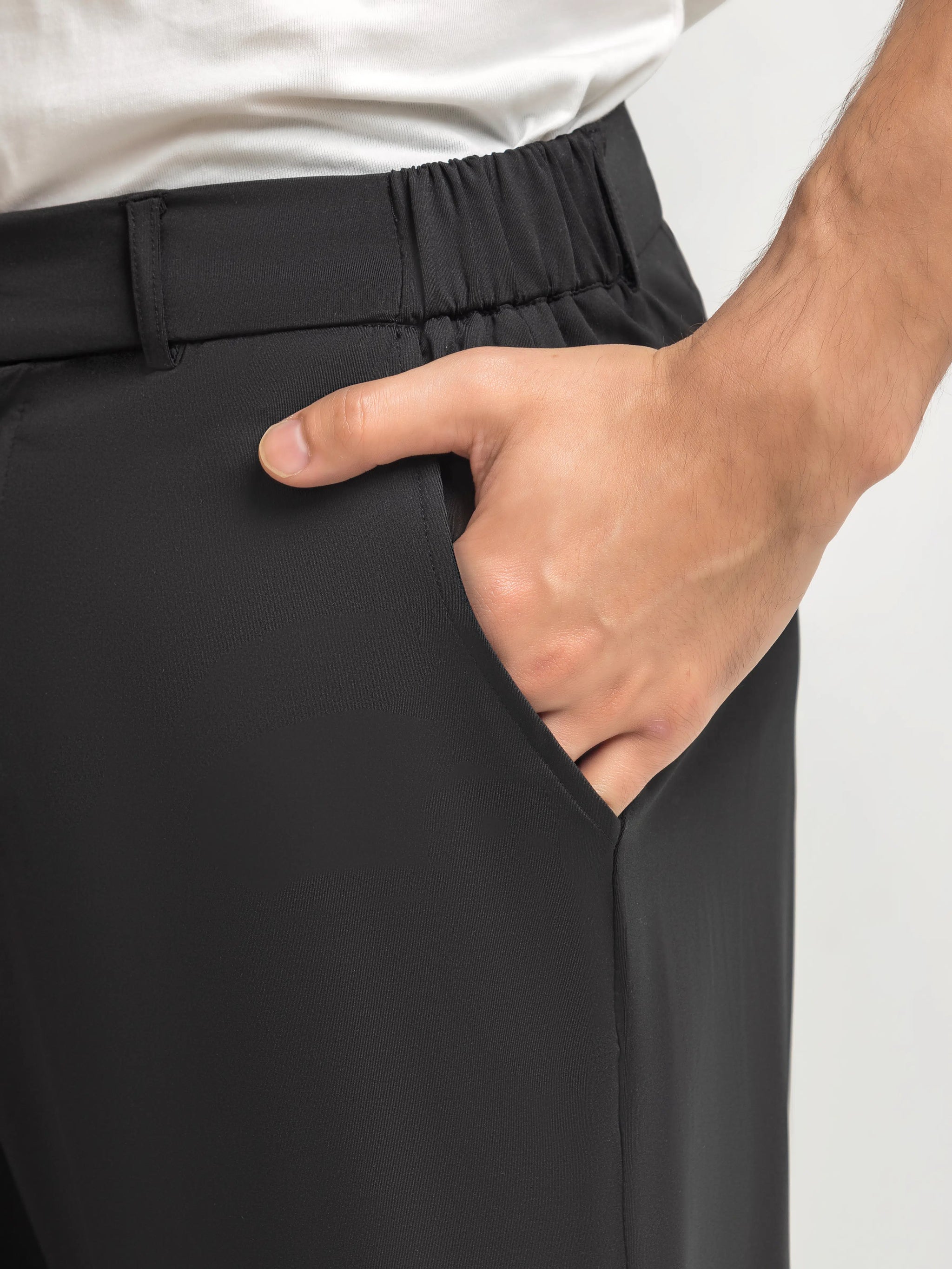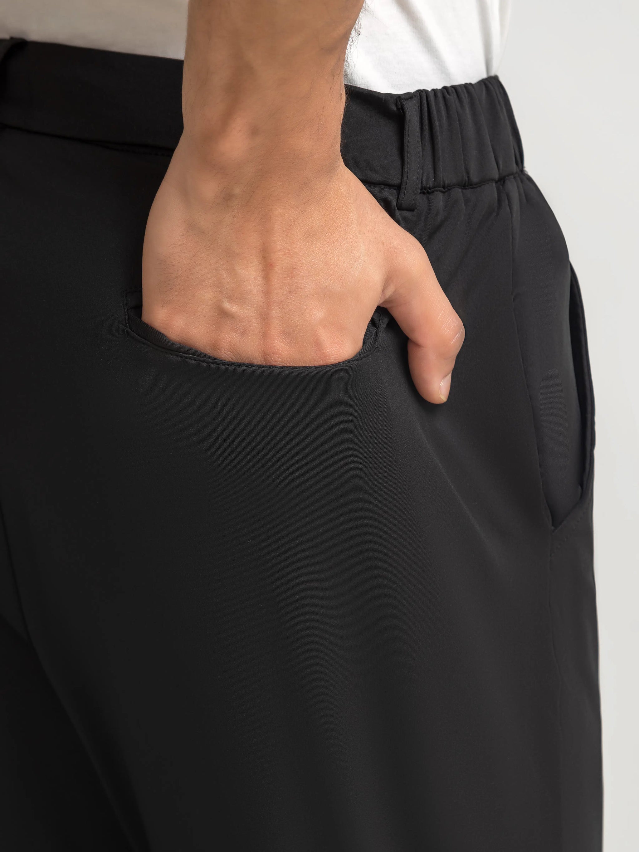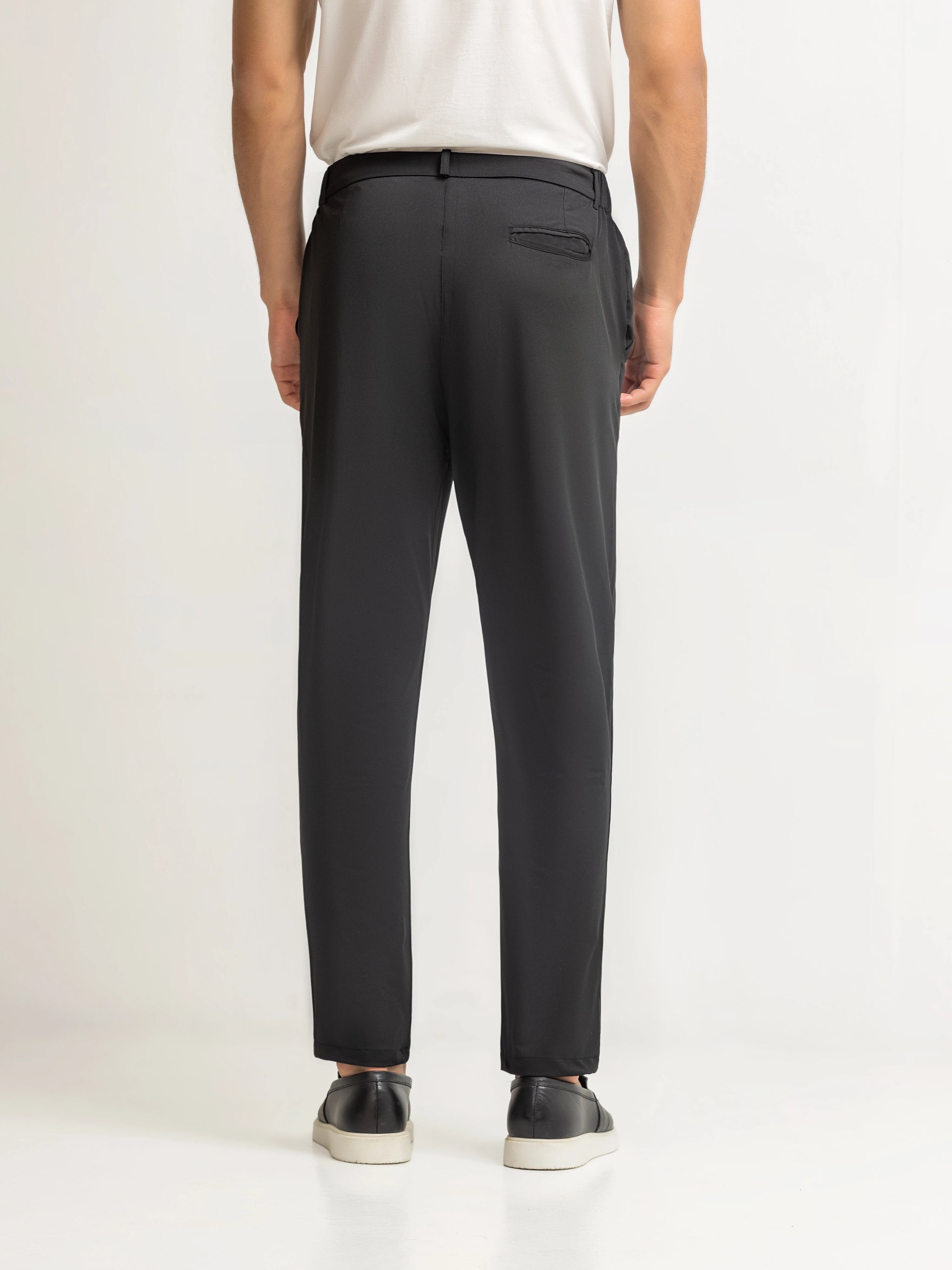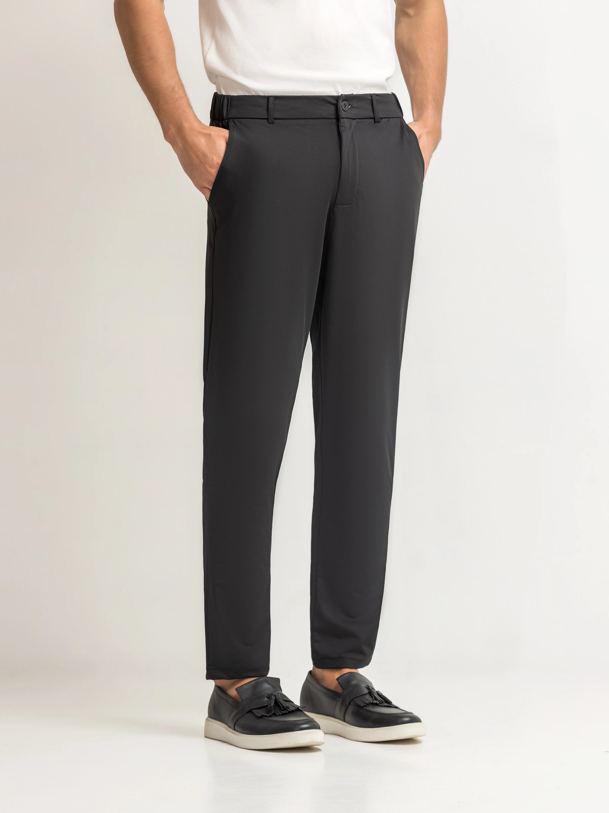 Slim fit Performance Pants Crafted from Blended Fabric for Comfort and Ease of Movement. Designed With Cross Pockets & DTM Buttons for a Sleek, Coordinated finish. A Sharp, Versatile Silhouette Ideal for Work, Daily Wear, and Smart-Casual Occasions.
