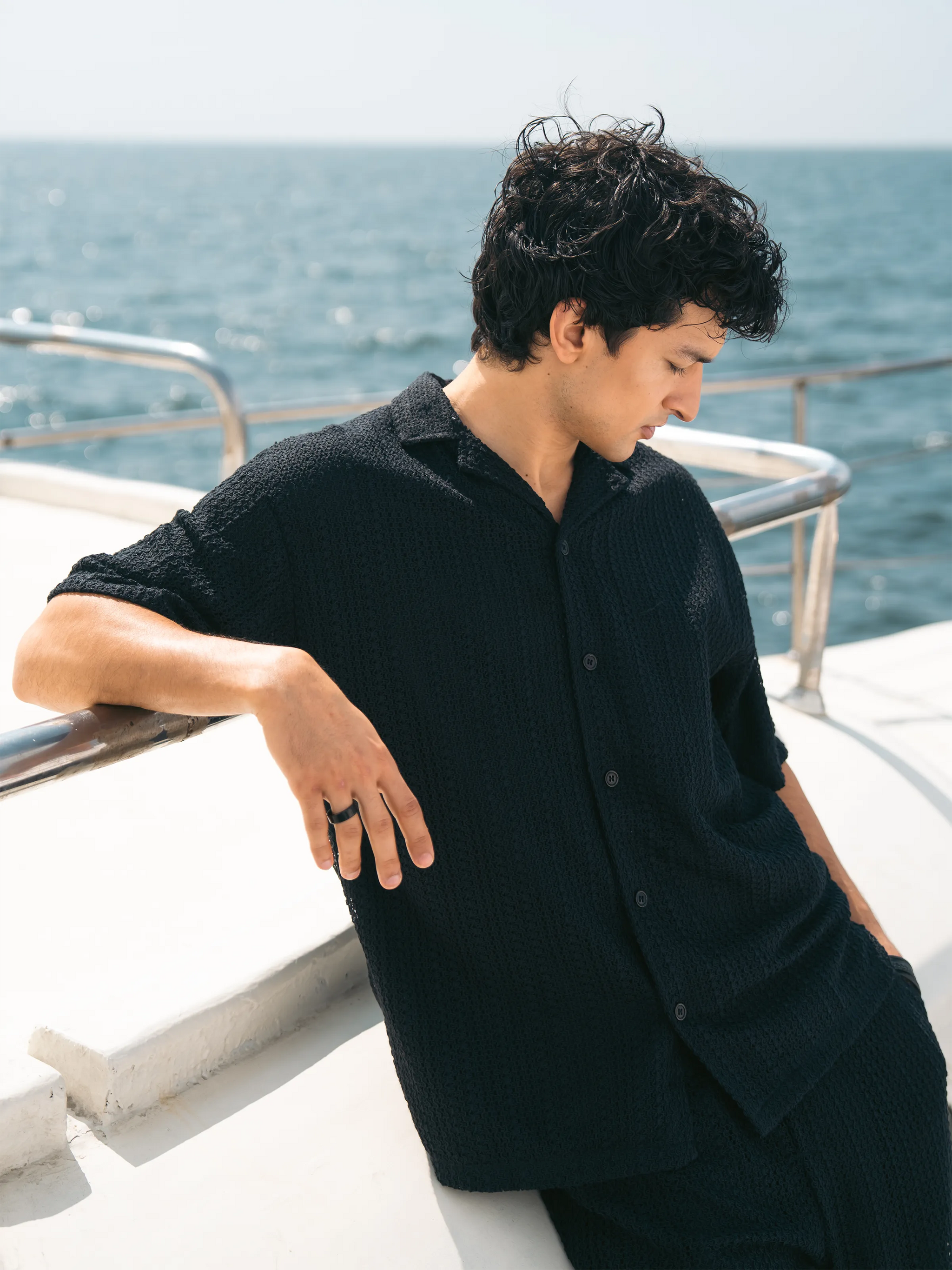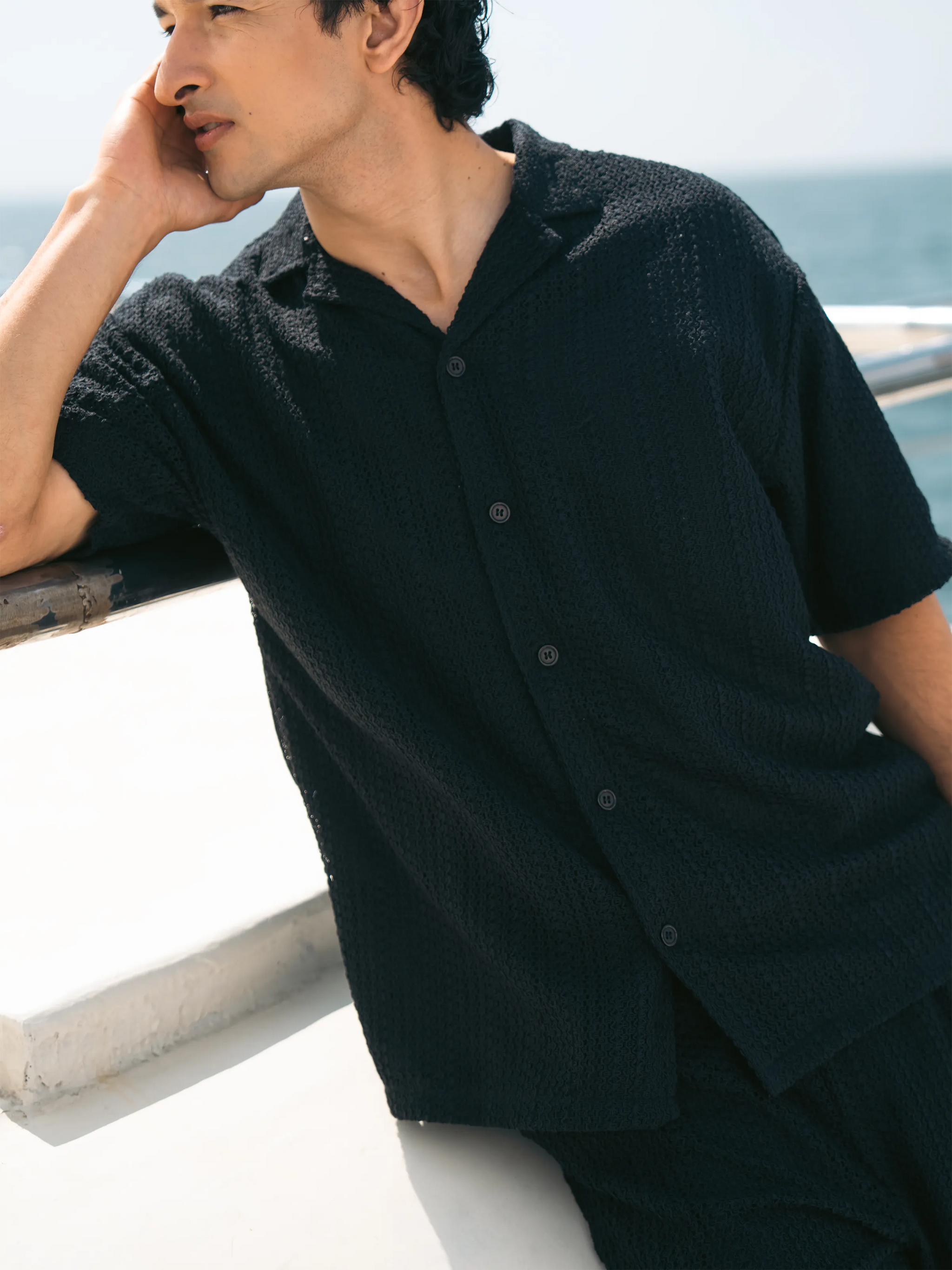 Relaxed Fit Co-ord Set Shirt Crafted from Soft, Breathable Crochet Fabric. Designed with a Classic Cuban Collar for an Effortless Resort Silhouette. A Lightweight Statement Piece Made for Warm-Weather Styling. Best Worn with Its Matching Trousers for a Complete Resort Look.