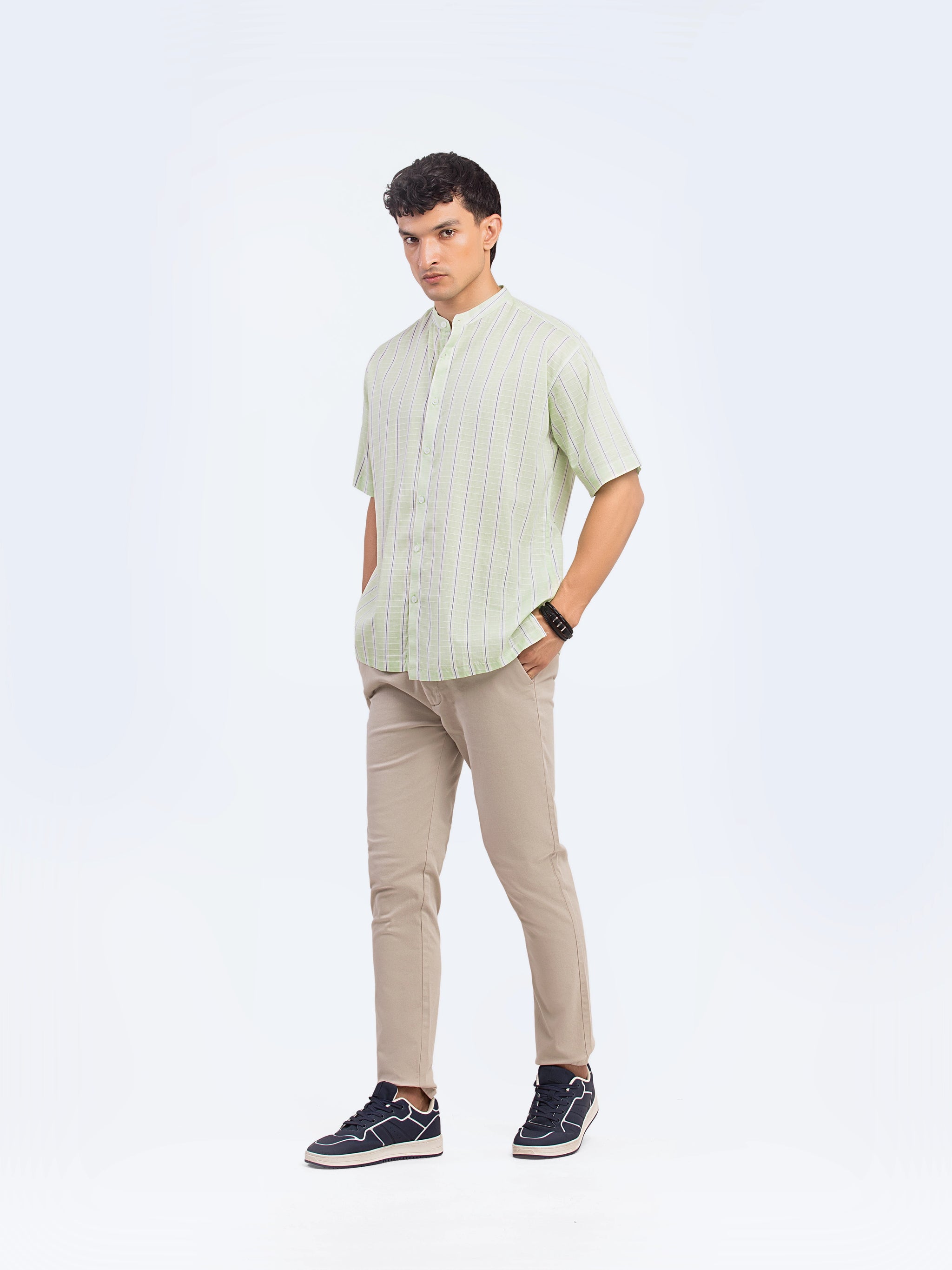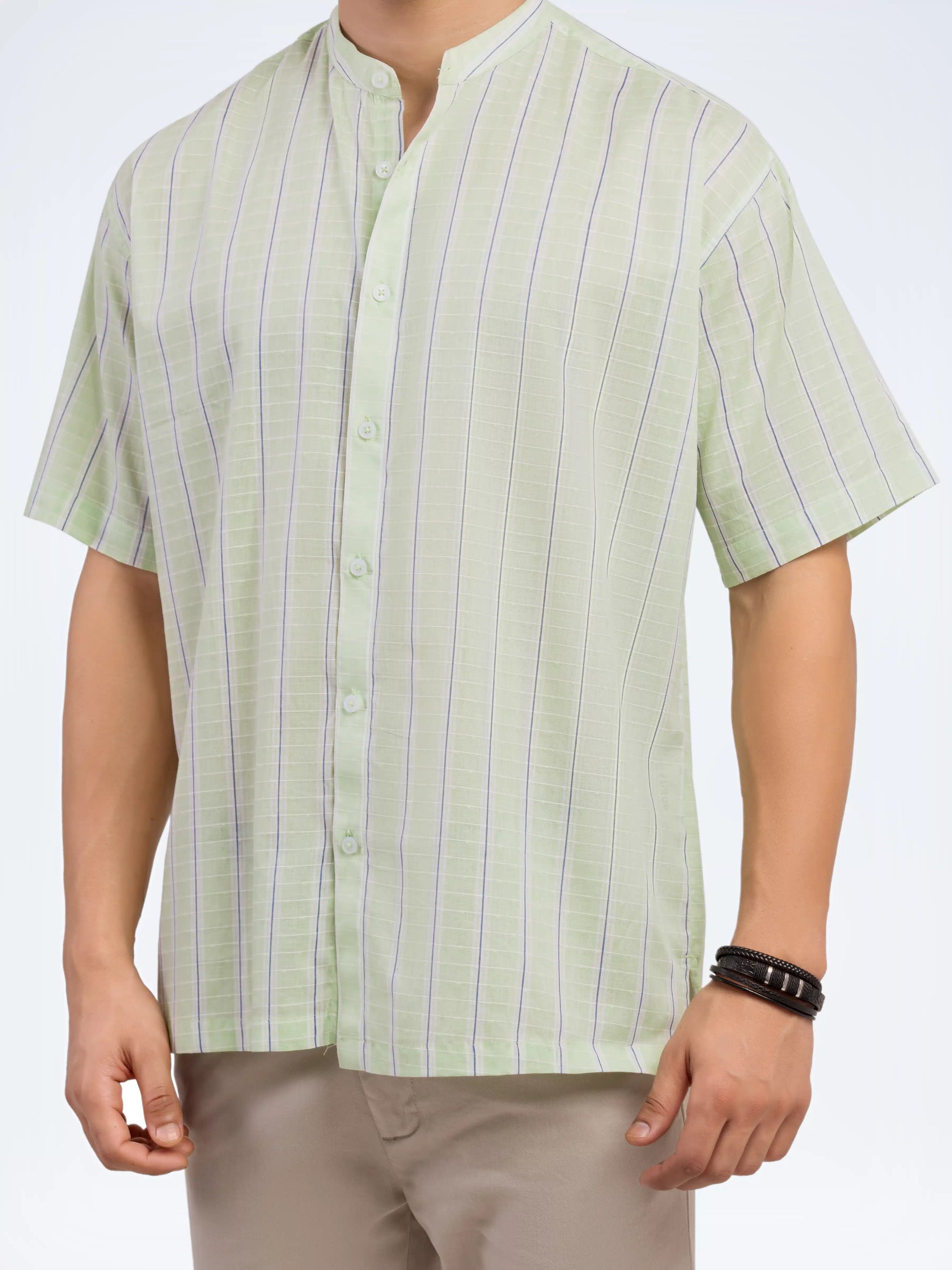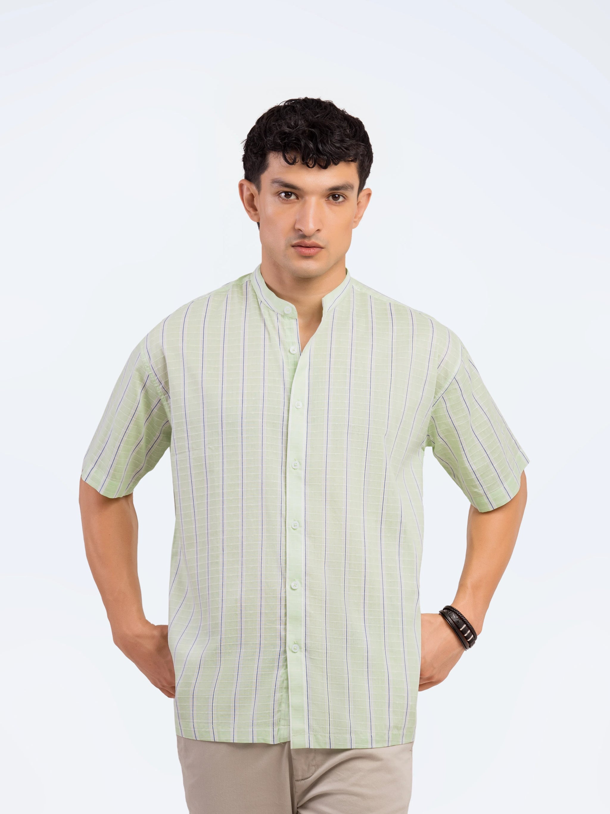 Striped Band Collar Shirt - FMTS5-32141