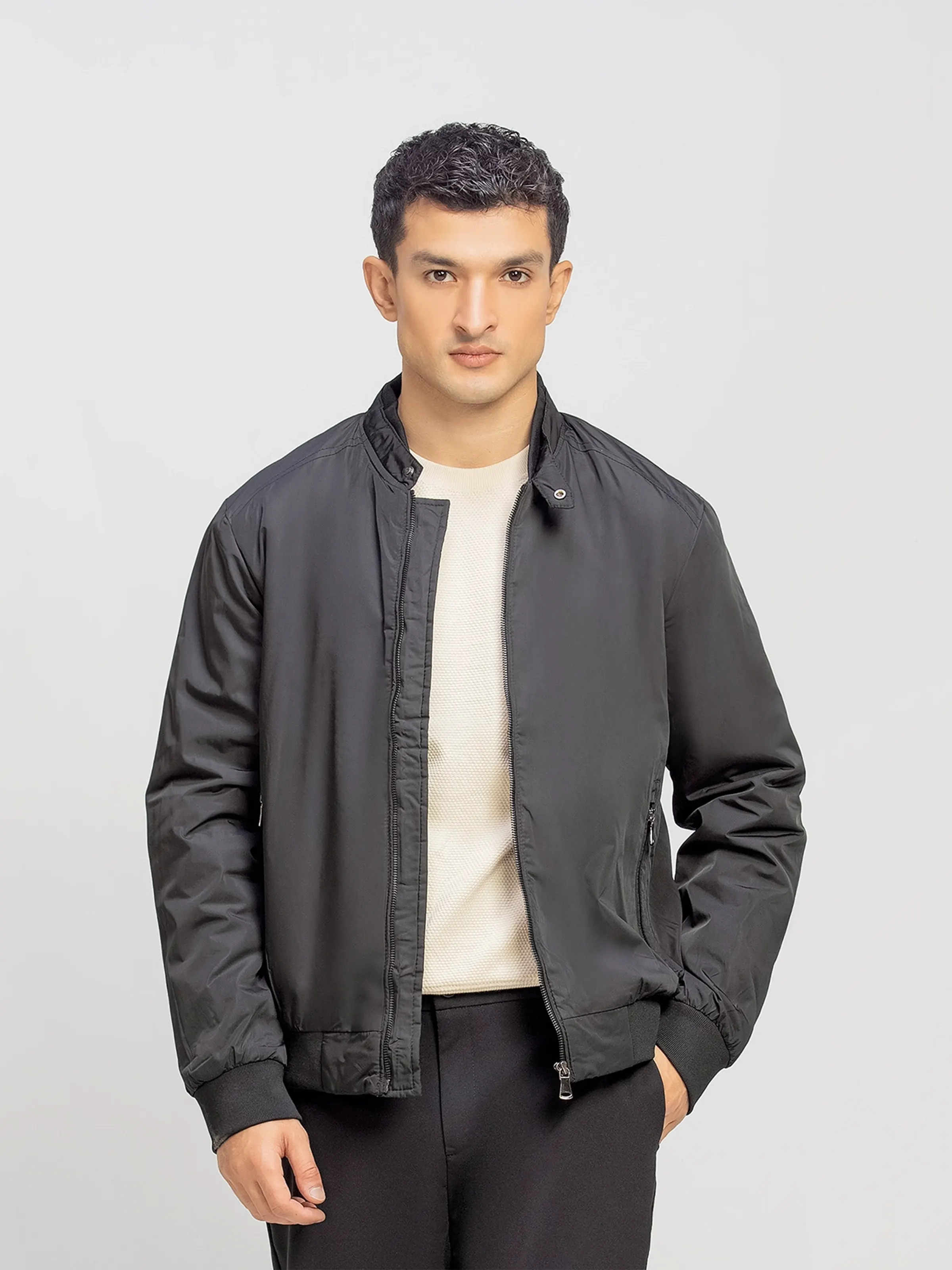 - Style: Zipper Jacket with Rib on Hem & Sleeves, and Button on Neck