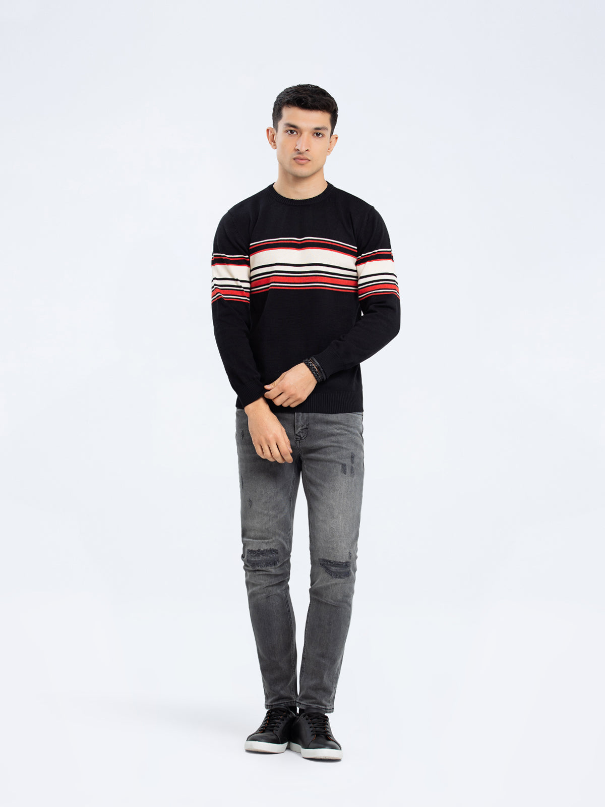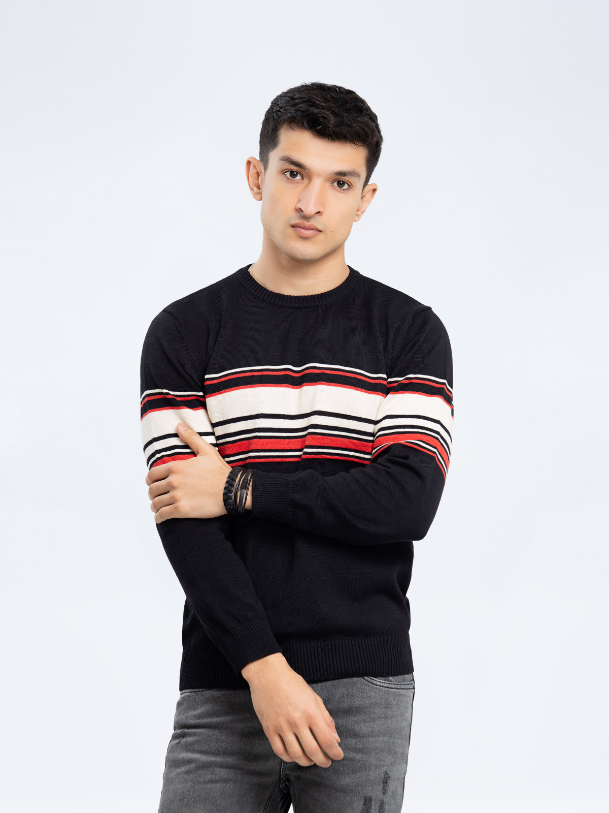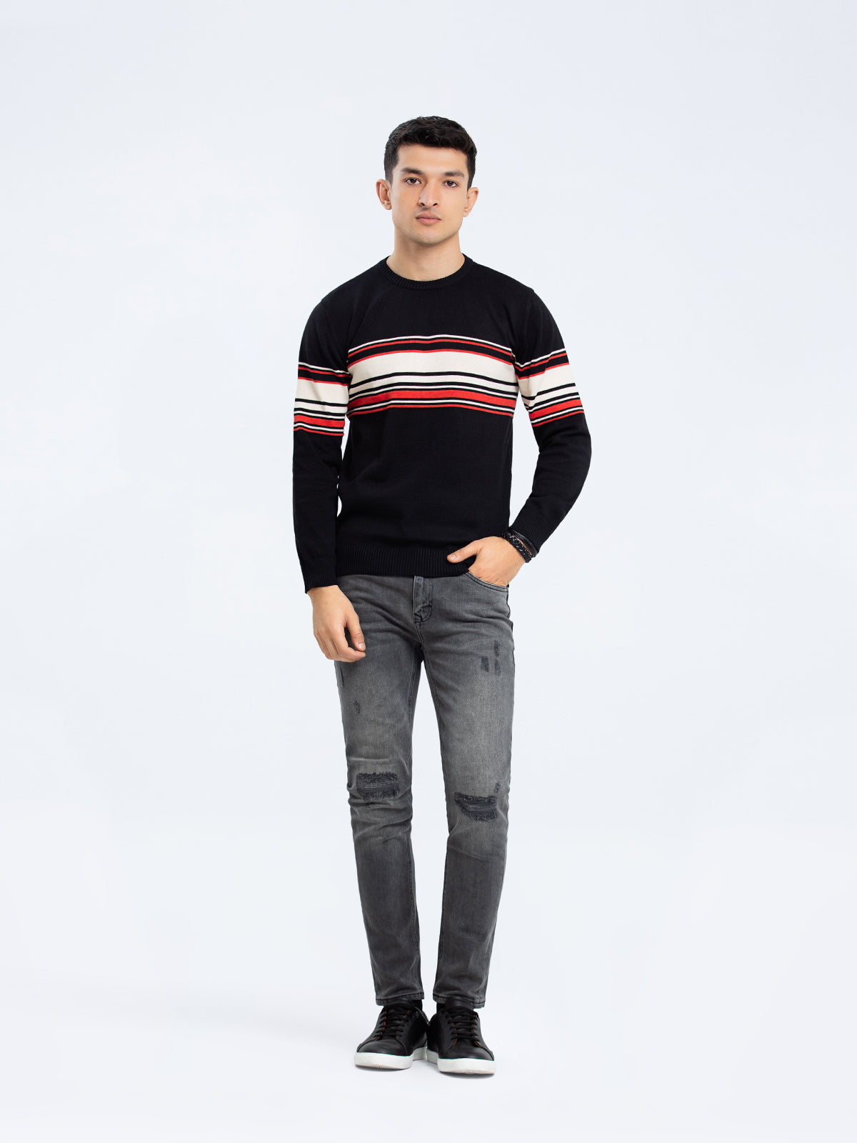 Jacquard Knitted Striped Sweater - FMTSWT23-024